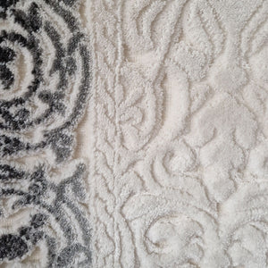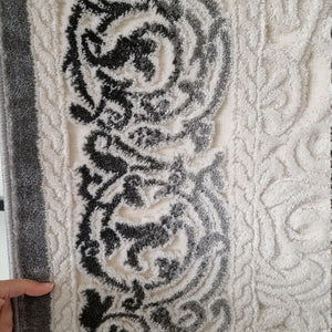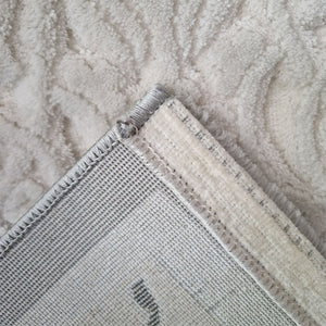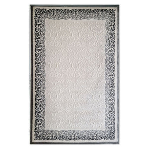 Mira 3D Elegant White Pearl Rug with Grey Border